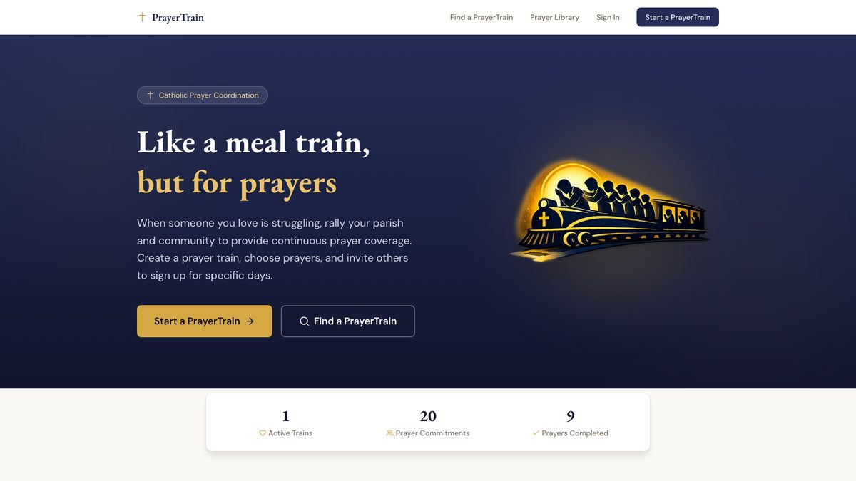 A faith-centered prayer coordination platform — like meal trains, but for organized prayer support during times of need. Built to help Catholic families rally around a loved one in crisis.